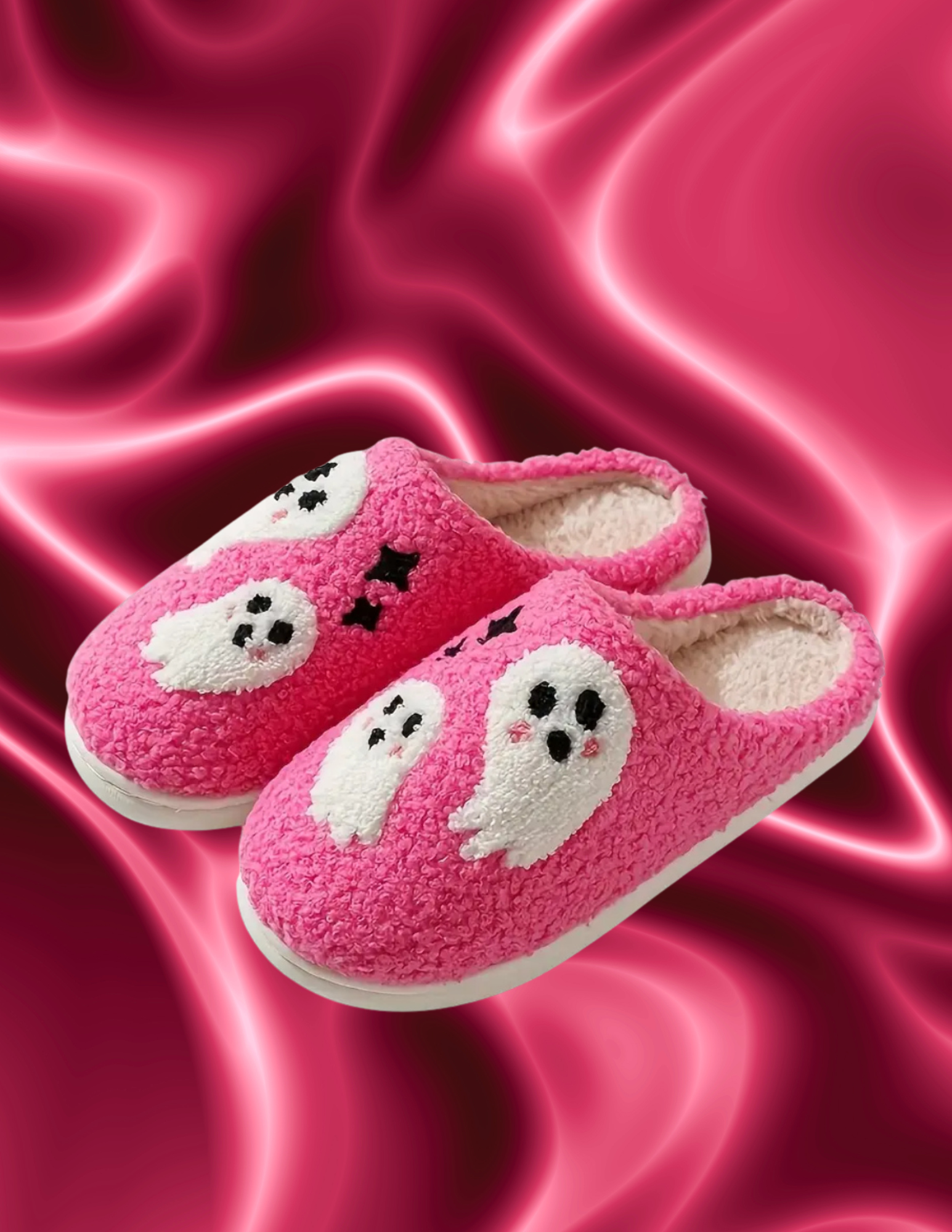 Get ready to haunt your house in style with Espooky Slippers! These cozy, vibrant pink slippers feature a cute ghost design and squishy soles for ultimate comfort. Perfect for keeping your feet warm and looking spooky at the same time. Boo-tiful!