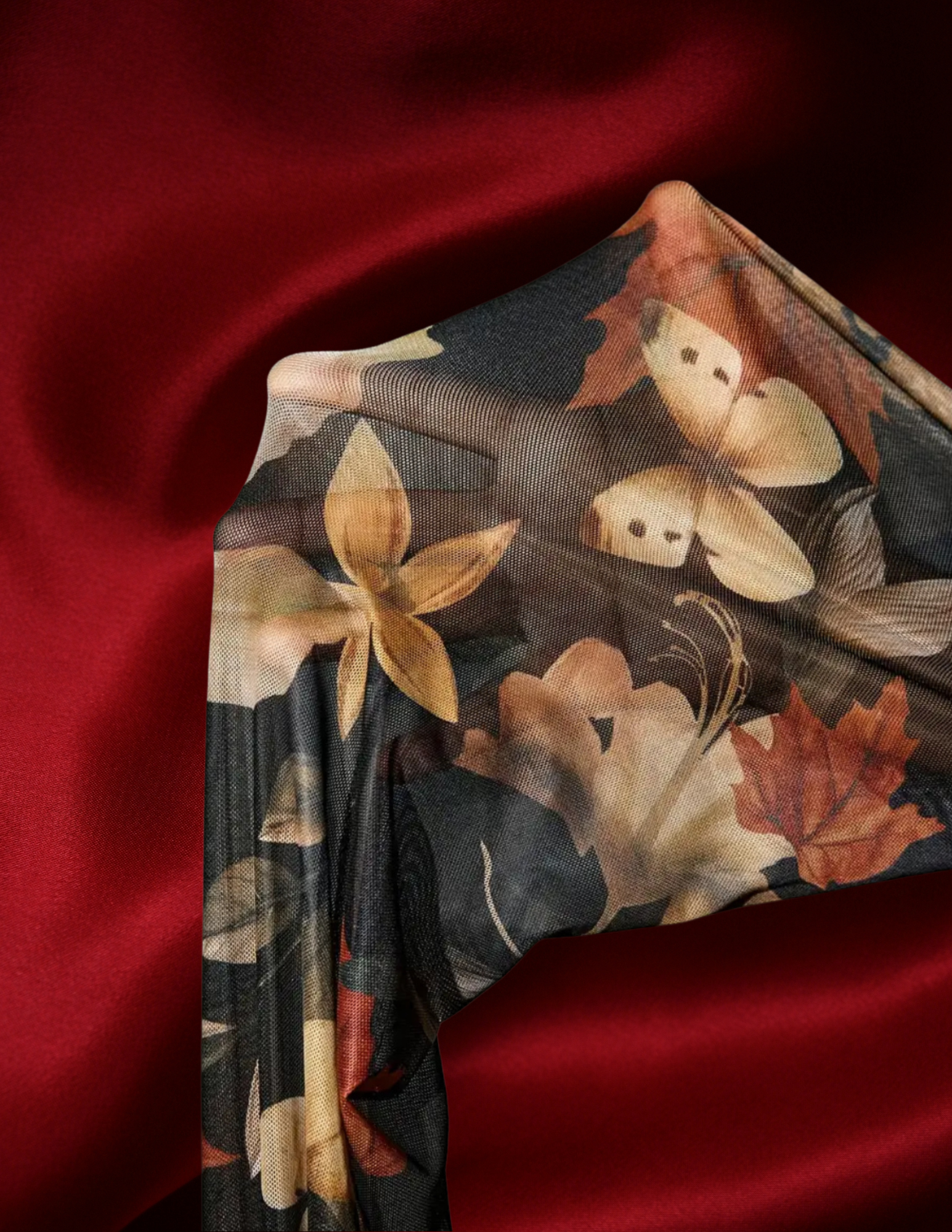 Turn heads in the Fall Florals Mesh Wrap top! Featuring breathable, semi-sheer, mesh with 4-way stretch. A super soft feel, making it perfect for twerking all night on the dance floor. The super soft quick drying polyester mesh fabric makes it double as the perfect beach coverup! Move with confidence and style wherever your vida loca takes you.